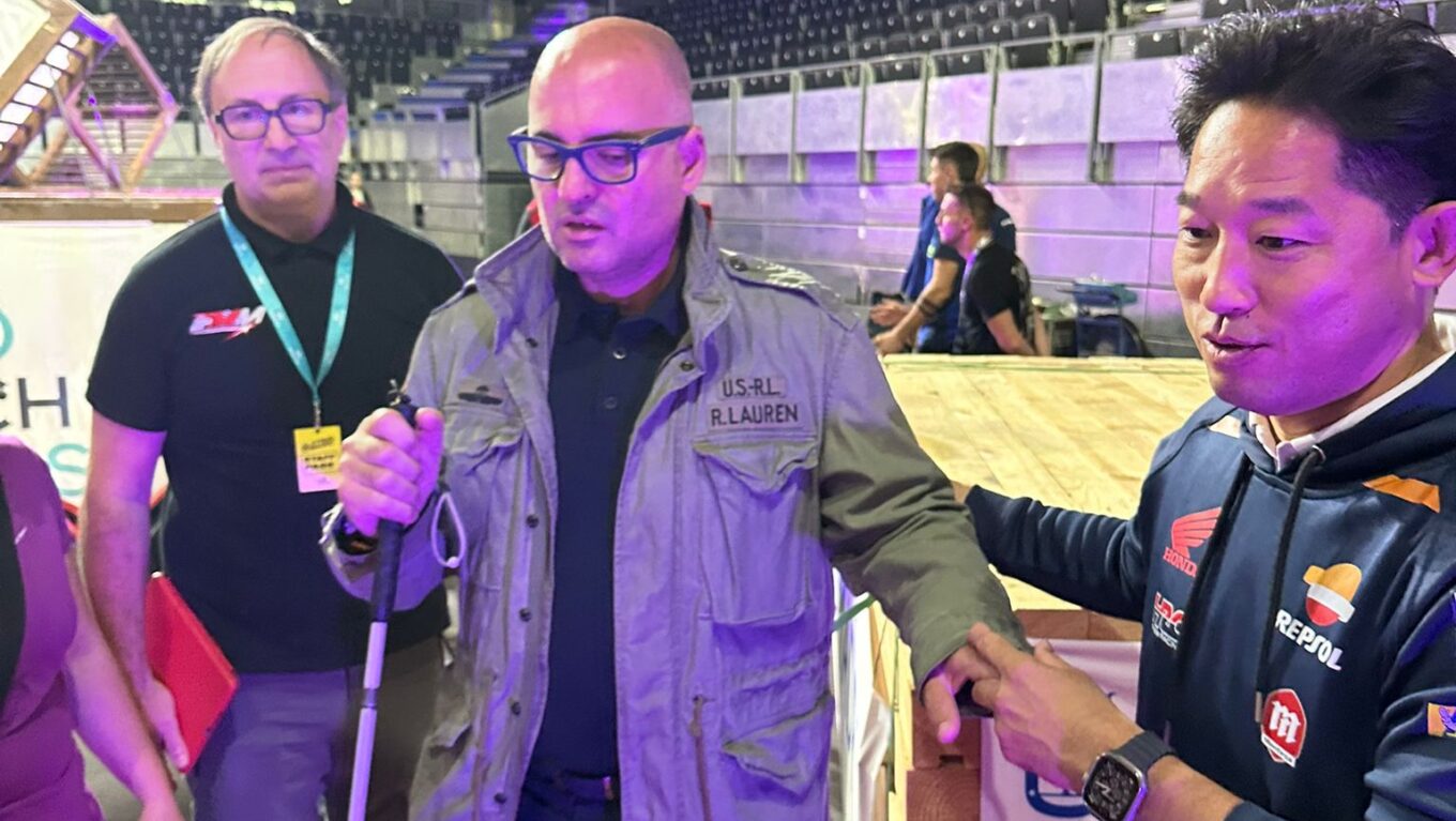 • Reglamento y zonas: los comisarios de la FIM explicaron las normas y el sistema de puntuación, guiando una visita táctil por las zonas de competición, donde los participantes exploraron texturas, alturas y tamaños de los obstáculos.