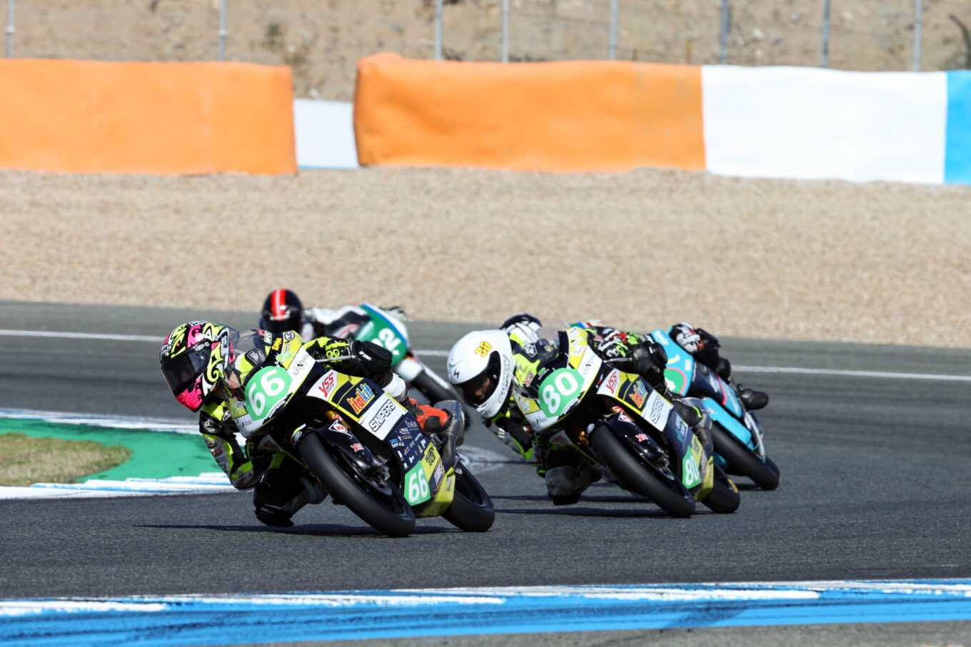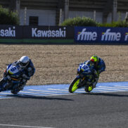 Tito Rabat protagonizó una gran salida con la que adelantó al sudafricano para colocarse primero. Junto a ellos, se unieron a la batalla Ivo Lopes, Román Ramos y Francisco Palomera. Los dos líderes pusieron tierra de por medio, pero pronto Odendaal marcó las diferencias devolviéndole el adelantamiento al de Bimota para escaparse definitivamente. Pronto, tuvo que hacer frente al auge de un estelar Francisco Palomera que sigue rubricando un magnífico año. El piloto de Laglisse adelantó a Rabat para afianzarse en la segunda plaza y despedirse de sus rivales.