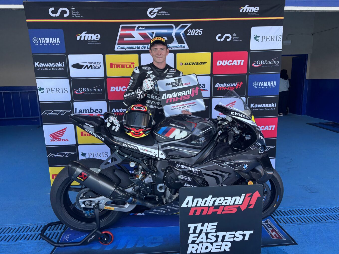 Steven Odendaal aterrizaba en Jerez como campeón de la categoría reina, pero aún quería rubricar su dominio con un último baile triunfante en Jerez. No obstante, la lucha por el subcampeonato también avivó la llama en el trazado gaditano con la batalla entre Ivo Lopes y Román Ramos. El fin de semana contó con el regreso del Campeón de 2022, el veterano Tito Rabat, a bordo de una Bimota. Por la mañana, la Pole Andreani MHS la conquistó el héroe de este 2025, Steven Odendaal. El sudafricano mantuvo su superioridad por la mañana y clasificó por delante del propio Rabat y de Ivo Lopes.