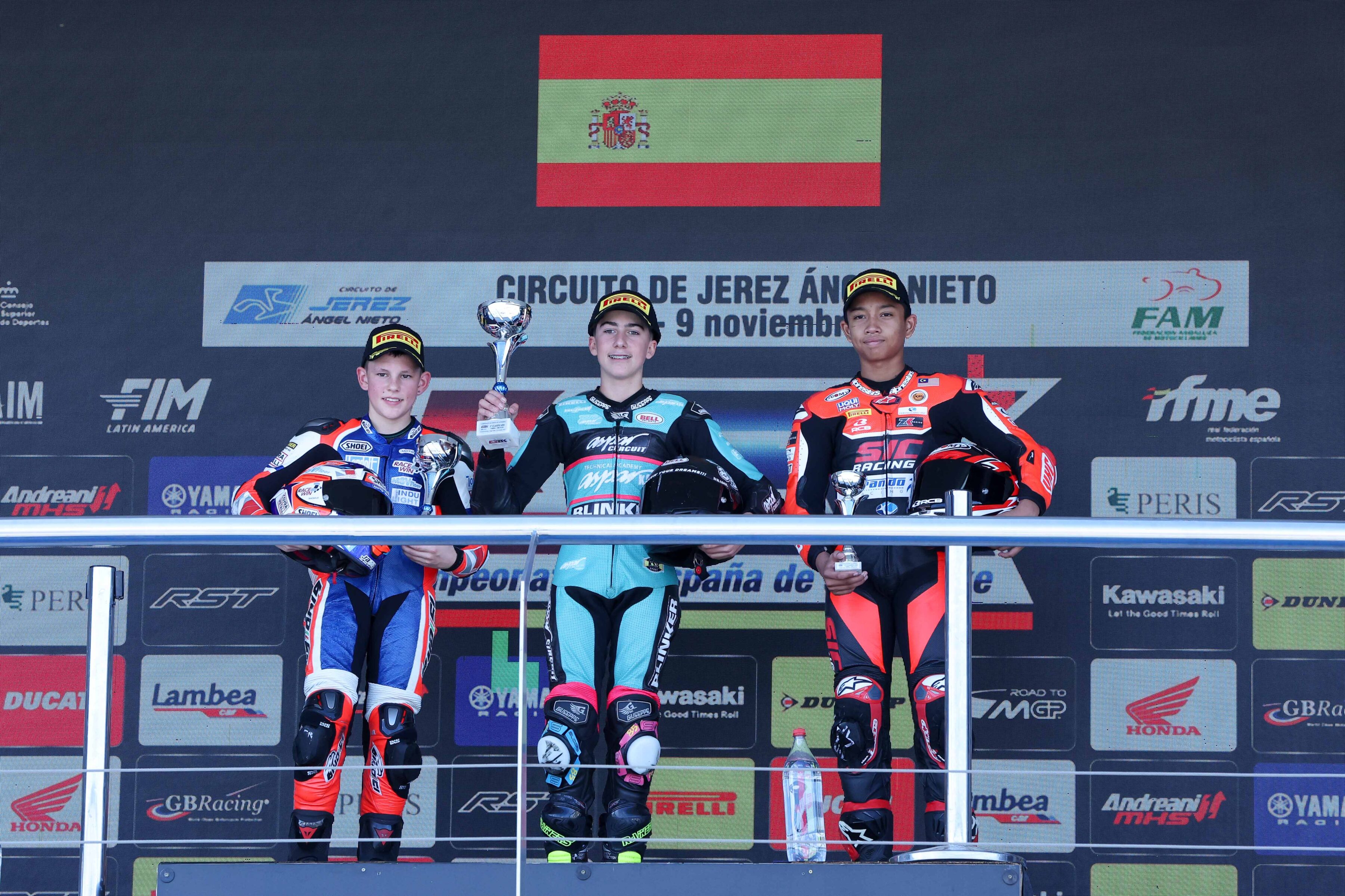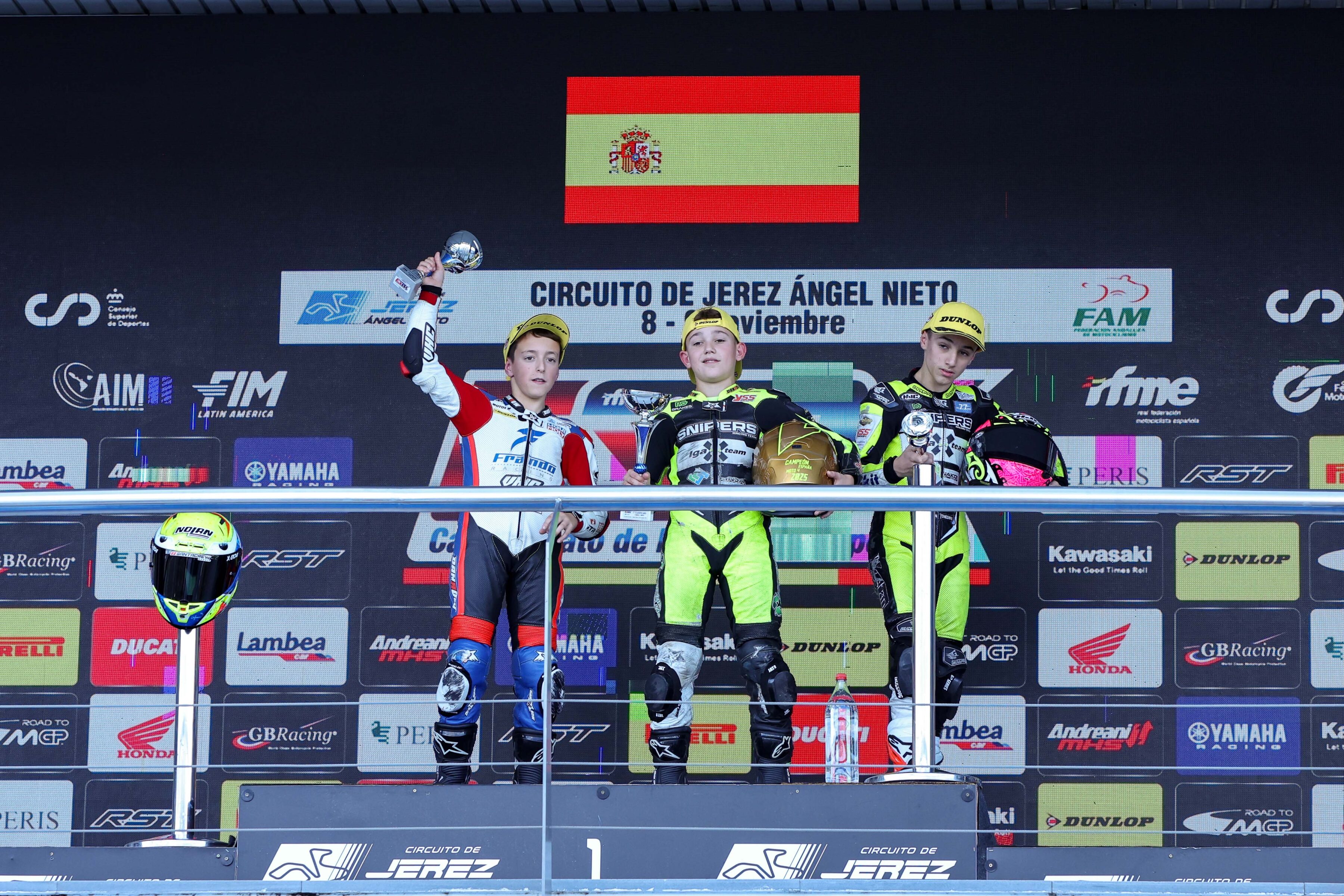 La parrilla benjamín también protagonizó otro sábado para enmarcar. Como fin de fiesta, Shengbo Sun hizo la pole en la última clasificación del año por delante de Jase Dill y de Samuele Di María. La carrera giró de guion con otra pugna repleta de pilotos donde el campeón, Marcos Vinagre, quiso despedir su dominio en este 2025 magistralmente.