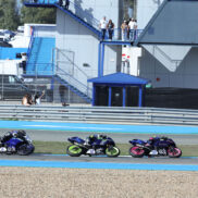 La hora de la verdad, el duelo a tres más esperado de todos para culminar la categoría del caos. Marco Tapia aterrizó líder con solo dos puntos de ventaja sobre Dani Muñoz y trece sobre Marcos Ludeña. Sin embargo, la ausencia del piloto de Kawasaki rumbo a Portimao para disputar la prueba en el Mundial de Moto2 redujo la contienda a dos contrincantes. Las cábalas no eran sencillas, pero el corredor del Speed Racing afrontaba la jornada del sábado con su primera bola de campeonato. Por la mañana, encarriló su oportunidad firmando la pole acompañado en primera fila de Ondrej Vostatek y Luengo Gaorekwe. Marcos Ludeña clasificó quinto por lo que la primera parte del plan se cumplió.
