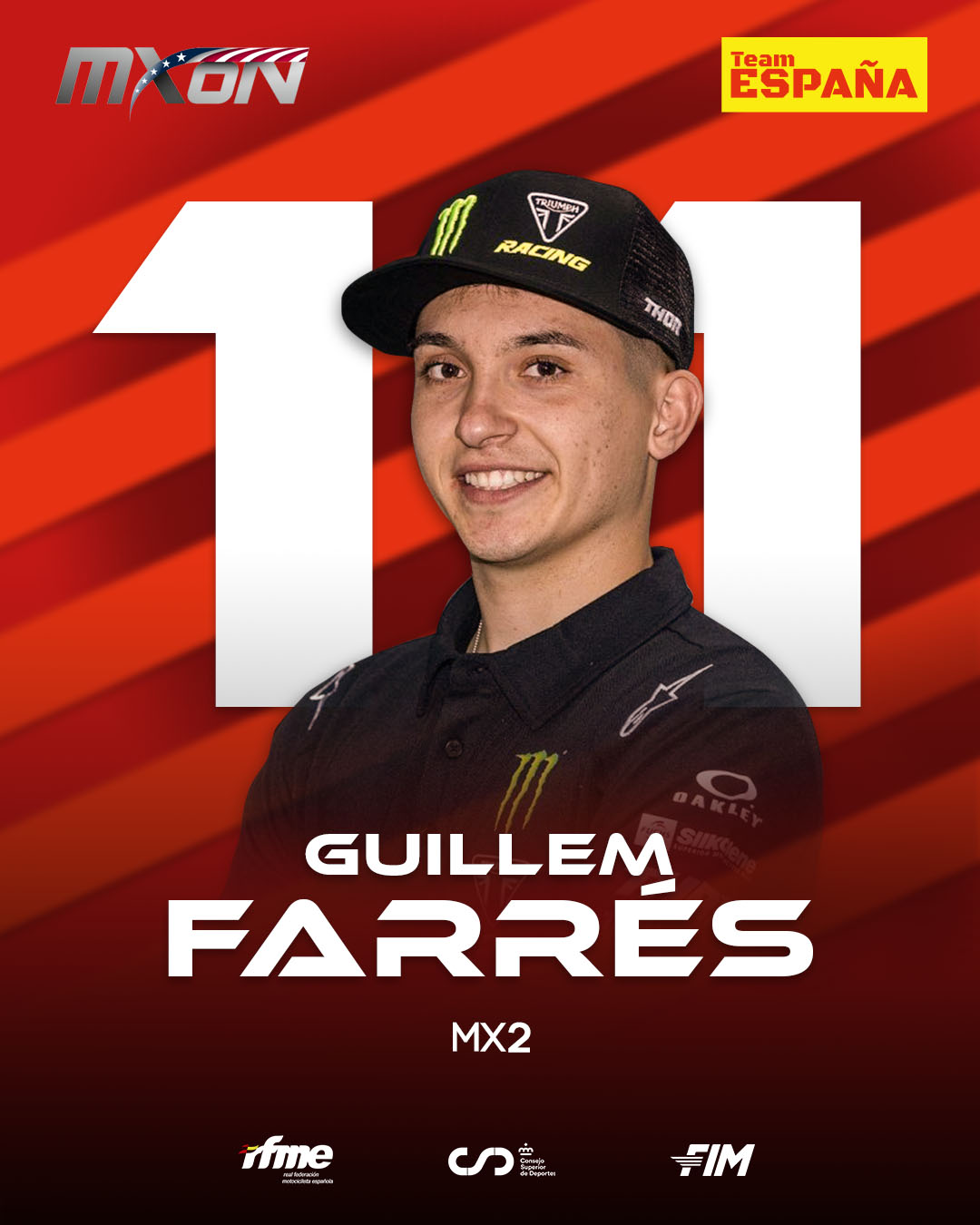 Quiero agradecer especialmente el soporte de Honda, Triumph y Kawasaki, así como a la RFME, por hacer posible que este equipo joven y competitivo pueda representar a España en el mayor evento del motocross mundial.”