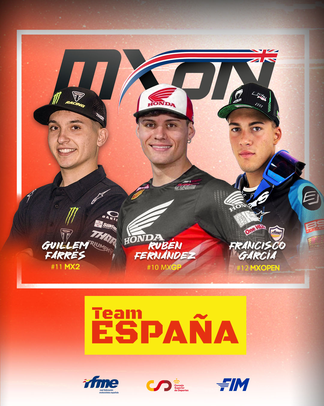 El seleccionador nacional Paco Rico afirma que: “desde la carrera de Lommel ya teníamos el equipo del MXON 2025 decidido y todos los acuerdos cerrados con los equipos para organizar la logística en Estados Unidos. Aunque los tres pilotos seleccionados no habían tenido contratiempos, sí hemos tenido que lidiar con problemas de salud y lesiones en otros pilotos de mi lista, además de la baja de última hora de Jorge, que por supuesto estaba en el equipo, pero finalmente no podrá estar en la parrilla.