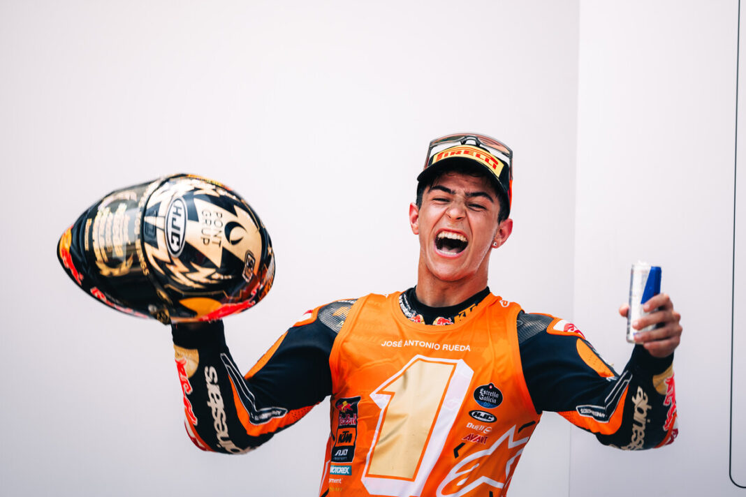 José Antonio Rueda escribe su nombre en la historia tras proclamarse Campeón del Mundo de Moto3. El joven piloto español ha logrado dominar la temporada de principio a fin y, aunque sus rivales no se lo han puesto fácil, el de KTM logró imponerse en una carrera que terminó de forma prematura tras una bandera roja pero que matemáticamente le daba su primer título mundialista.