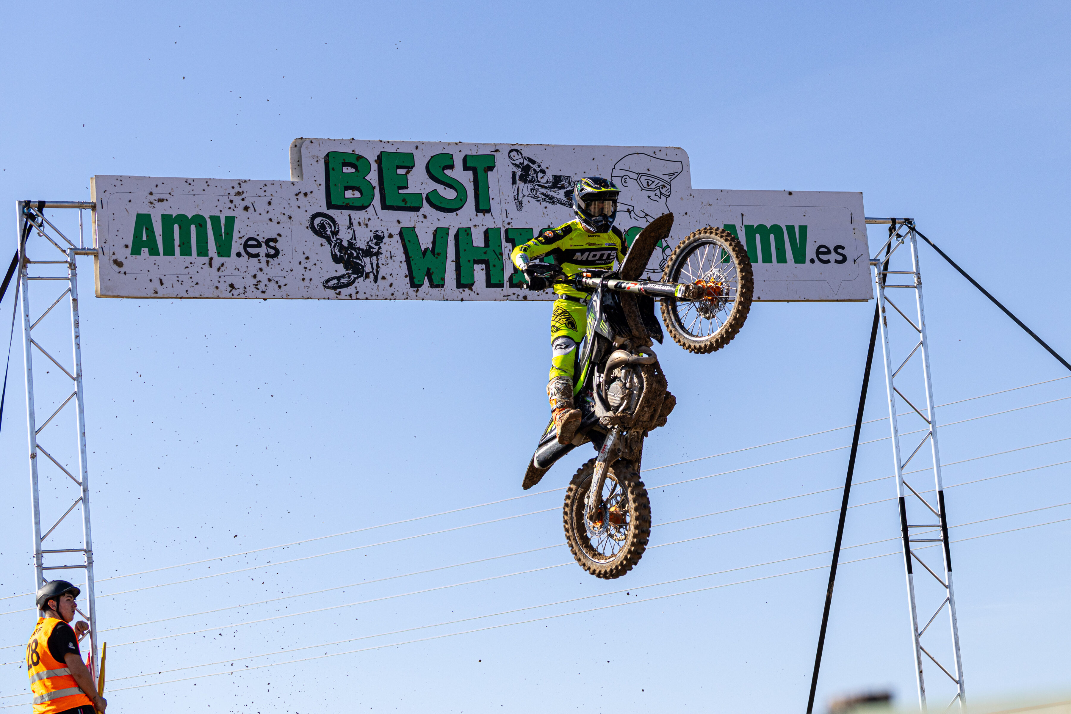 Victoria para José Antonio Butrón en la primera manga de MX1, que lideró la carrera tras adelantar a Carlos Campano que había logrado el holeshot. Ander Valentín termina en segunda posición y se queda a tres puntos de ventaja sobre el de TRT Motorcycles. Gerard Congost estuvo cerca de adelantar a Ander y complicarle las cosas en la lucha por el título, pero Valentín logró aguantar el empuje de Congost para terminar por delante de él.