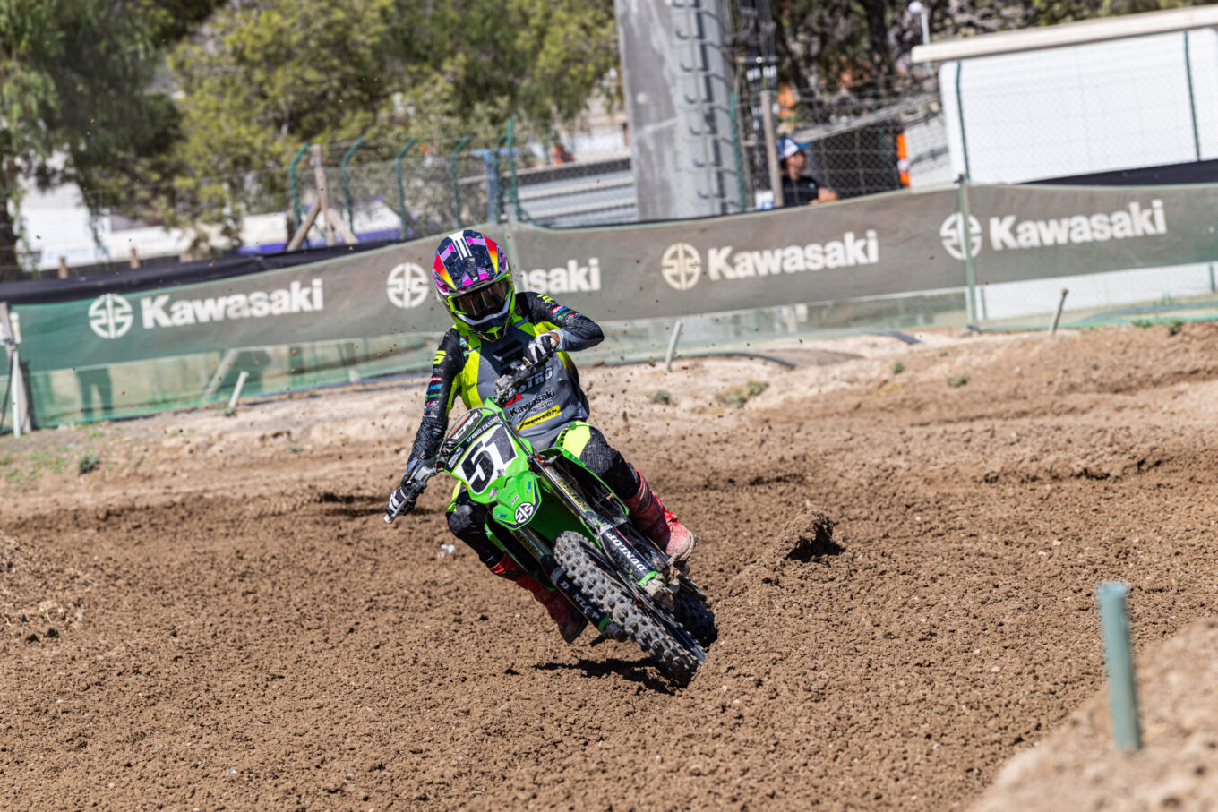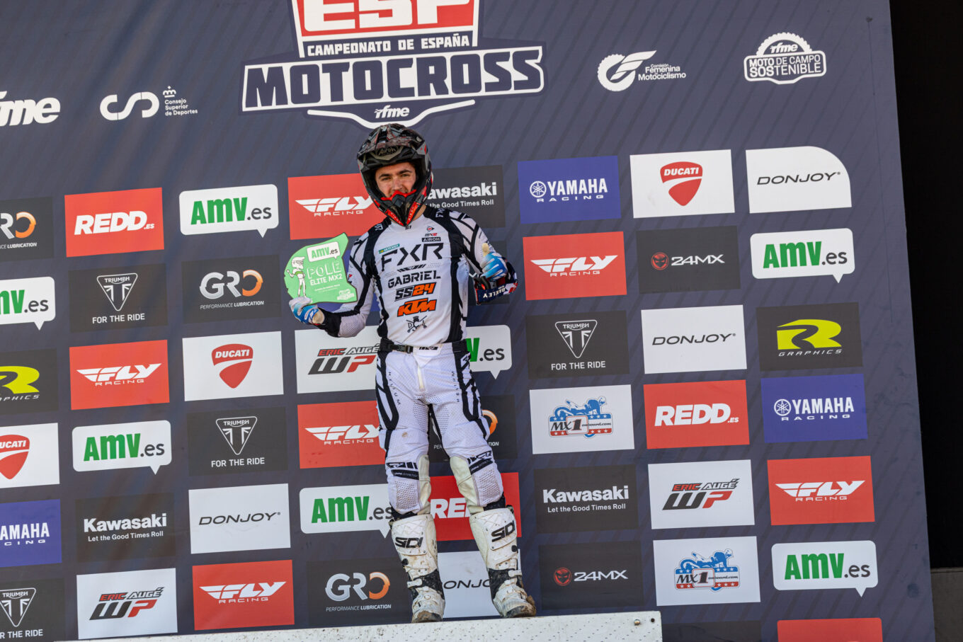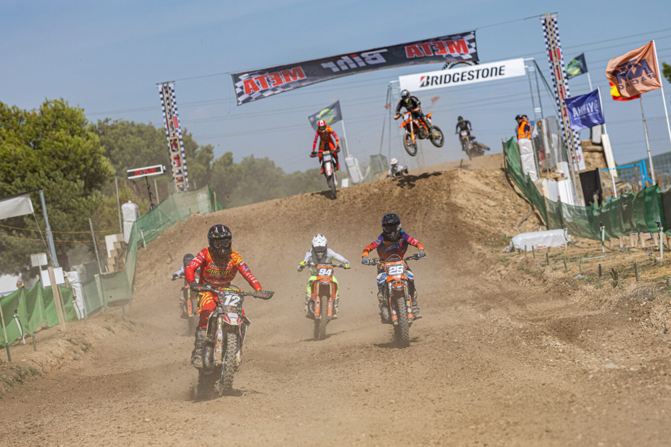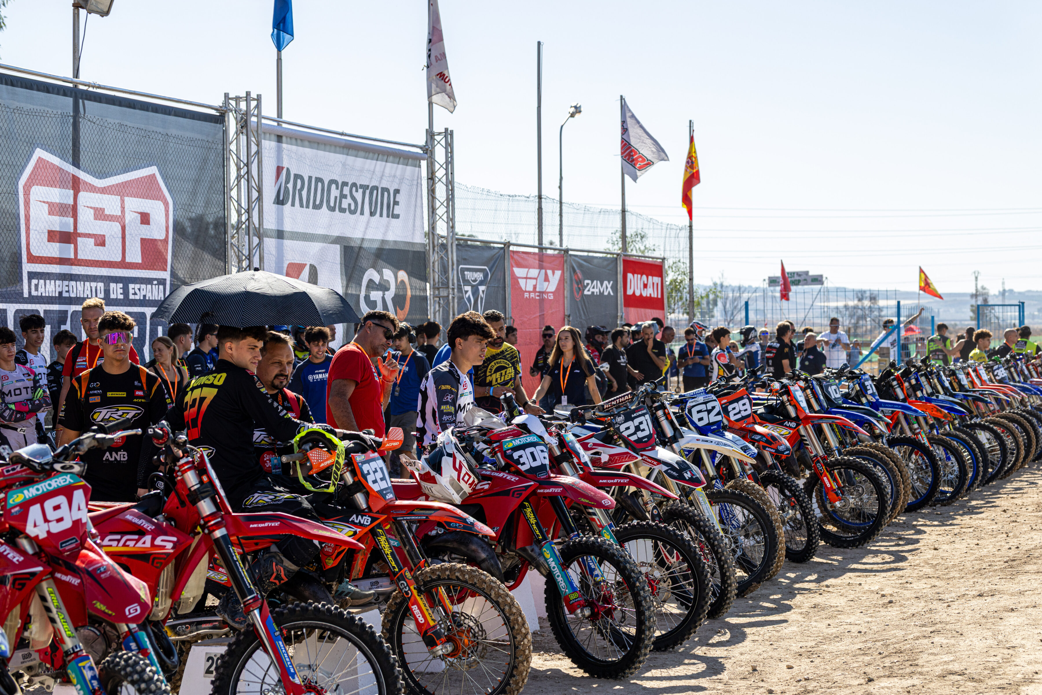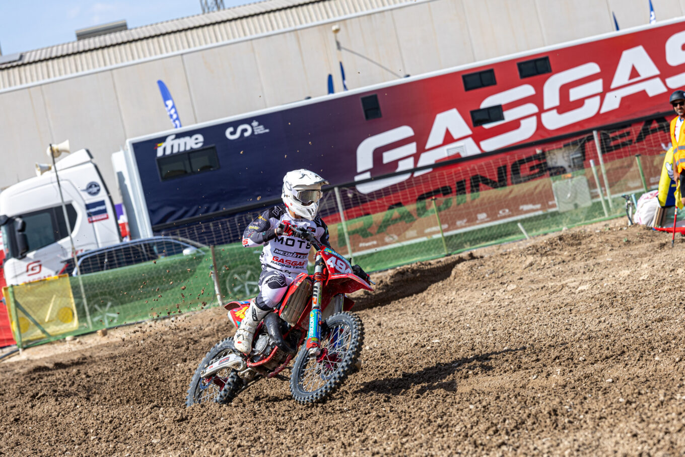 Victoria para José Antonio Butrón en la primera manga de MX1, que lideró la carrera tras adelantar a Carlos Campano que había logrado el holeshot. Ander Valentín termina en segunda posición y se queda a tres puntos de ventaja sobre el de TRT Motorcycles. Gerard Congost estuvo cerca de adelantar a Ander y complicarle las cosas en la lucha por el título, pero Valentín logró aguantar el empuje de Congost para terminar por delante de él.